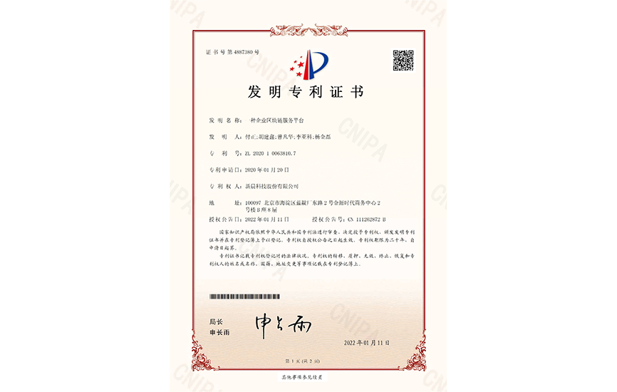 新晨科技获得区块链创新技术专利授权